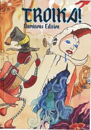 Troika! é o que você obteria se cruzasse Dying Earth com Monty Python, com regras que lembram os antigos livros de Fighting Fantasy . os antecedentes de 66 personagens incluem o Anão Mal Feito, Membro da Sublime Sociedade de Bifes e o Cético Lamassu (junto com alguns menos malucos, como o Necromante, o Cavaleiro Questing e um Anão mais regular.