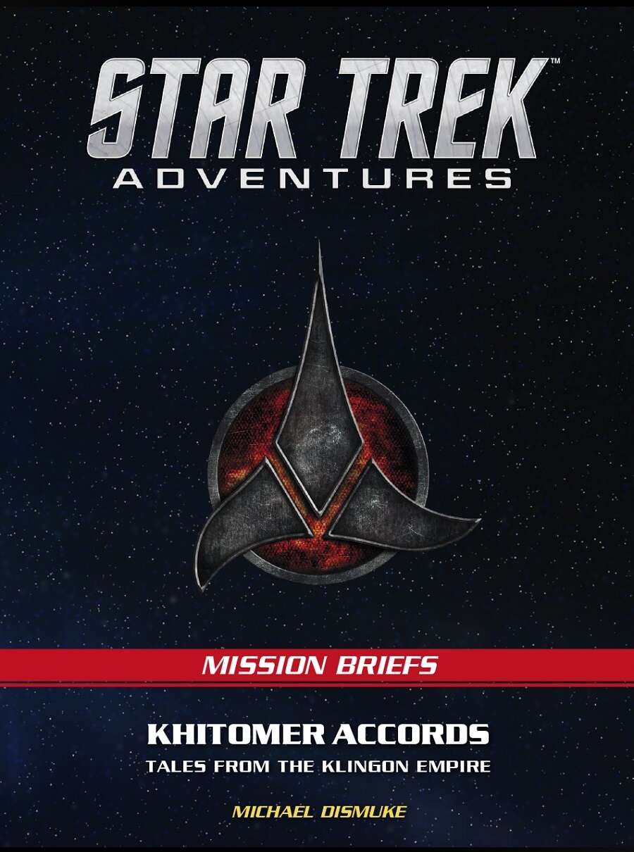 Modiphius lançou Mission Briefs: Khitomer Accords for Star Trek Adventures , uma coleção de dez missões curtas para uma tripulação Klingon ambientada durante o principal ponto de articulação galáctico no final da era do cinema e não muito antes da era da próxima geração e participar do eventos que transformaram os Klingons de inimigos ferrenhos em aliados leais da Federação.