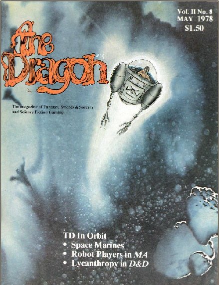 Há uma certa inclinação de ficção científica nesta edição, prenunciada por uma bela capa de nave espacial que proclama "TD em órbita". O artista, Steve Oliff, ganhou alguns elogios na indústria de quadrinhos como colorista. Entre as capas, encontramos dois artigos para Metamorphosis Alpha, um descrevendo como jogar como um robô e outro contendo um conjunto de gráficos de geração de plano de fundo para personagens. O conteúdo de ficção científica é completado com uma análise do aclamado jogo de tabuleiro Cosmic Encounter , bem como algumas notas de design do criador do jogo de guerra Space Marines.