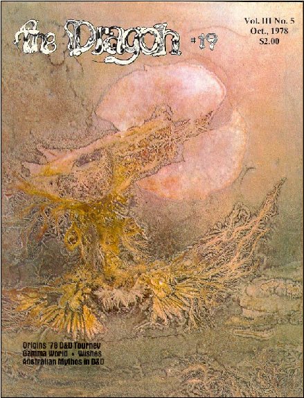 Há algumas outras coisas boas de D&D na edição. Dois artigos são sobre tesouros, um com um gráfico de localizações de tesouros e o outro descrevendo algumas ideias para tornar tesouros mais interessantes. Há um artigo com sugestões sobre como lidar com desejos (um tópico frequente de discussão naquela época), um gráfico de determinação de magia para usuários hostis de magia e outro artigo sugerindo uma nova maneira de categorizar magias.