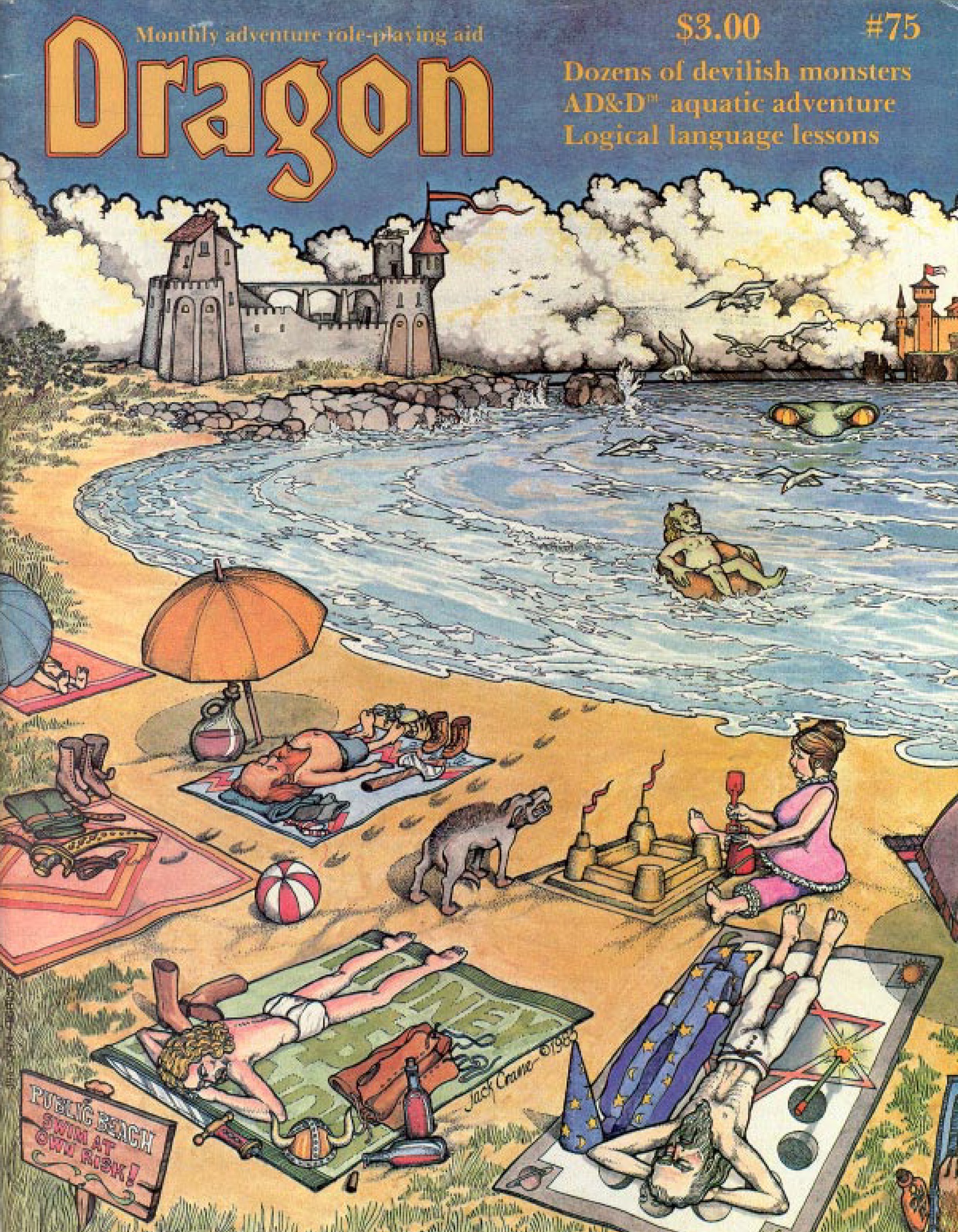 Dragon Publishing lançou Dragon #75 em julho de 1983. Tem 100 páginas e tem um preço de capa de $3,00. Nesta edição, temos a ecologia do mimic, lições de linguagem lógica e uma introdução aos Nove Infernos!
