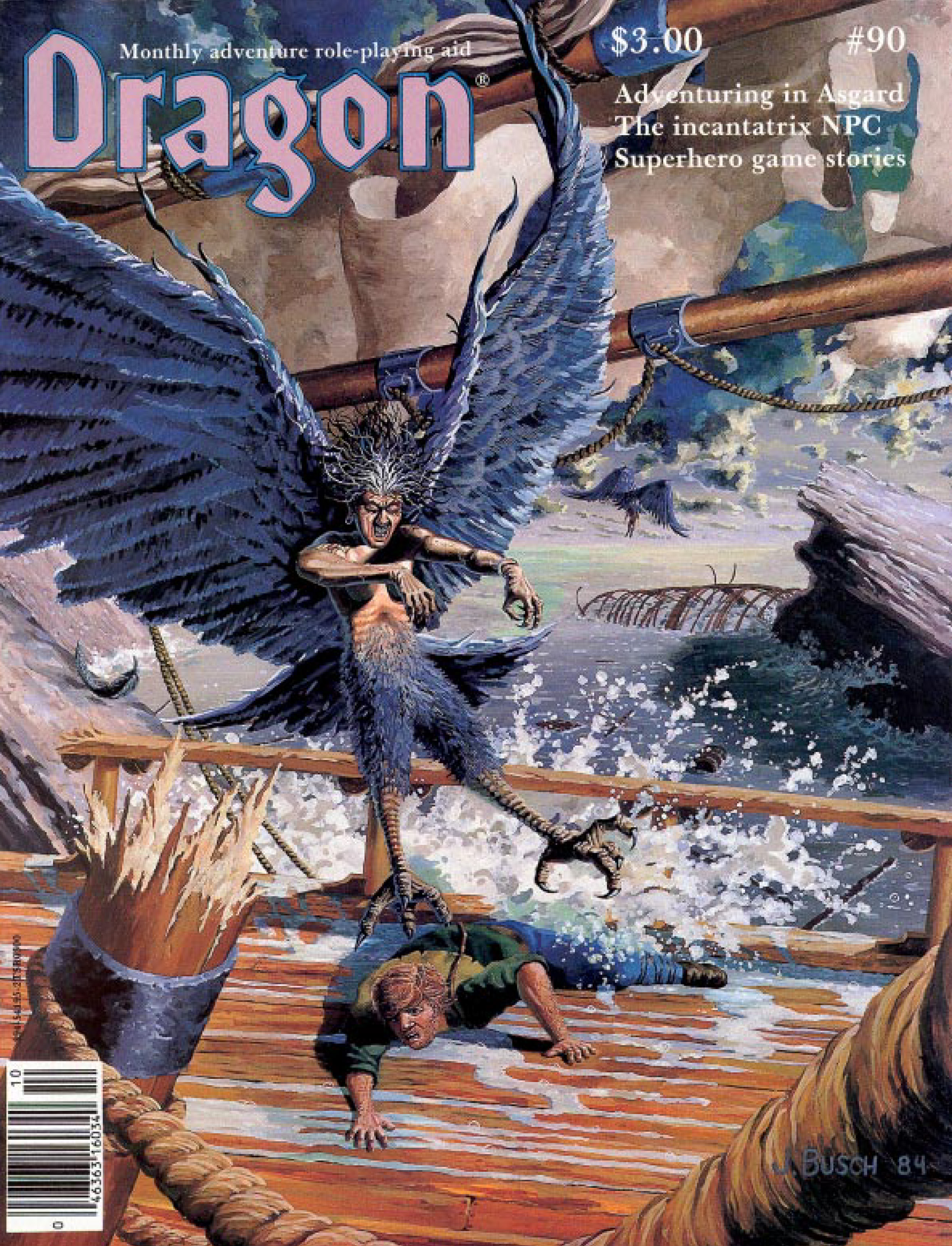 A Dragon Publishing lançou Dragon #90 em outubro de 1984. Tem 100 páginas e tem um preço de capa de $3,00. Esta edição apresenta mitologia nórdica, a misteriosa incantatrix e muitos morcegos!