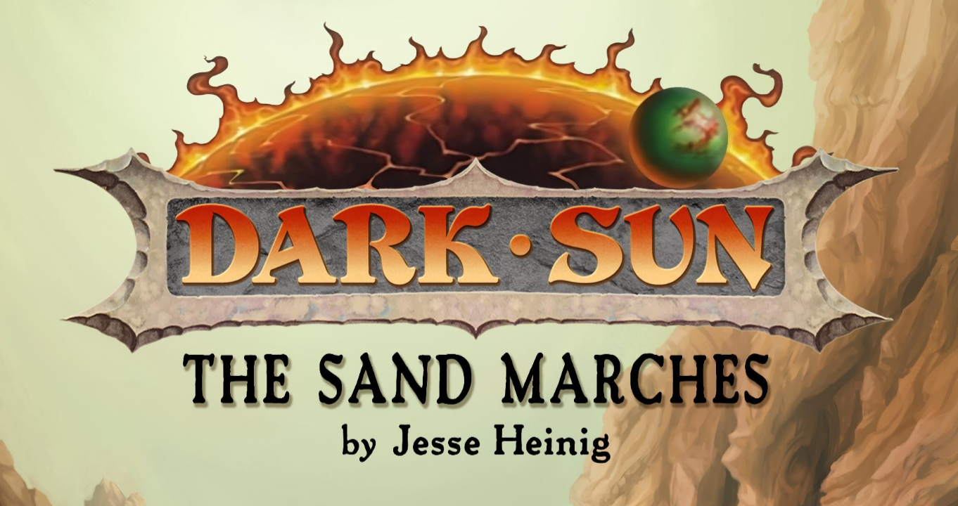 Jesse Heinig lançou uma atualização massiva para o cenário Dark Sun com um PDF de 378 páginas chamado The Sand Marches . Este projeto apaixonante cria uma campanha no estilo West Marches a partir do cenário clássico de sobrevivência para AD&D 2ª Edição , usando essas regras. Observação: o link leva diretamente para o download do PDF.
